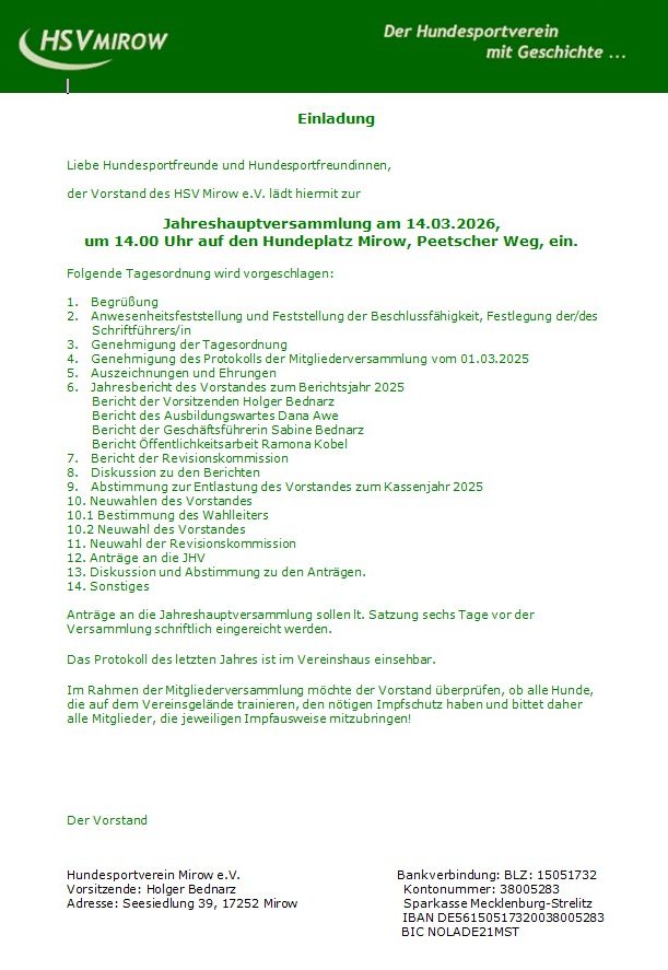 Hundesportverein Mirow e.V.